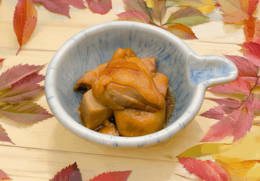 国産里芋と、国産鶏肉を和風だしでじっくりと煮込みました。ほっくりした里芋の甘みと、鶏肉の旨み、ゆずの爽やかな風味が広がります。