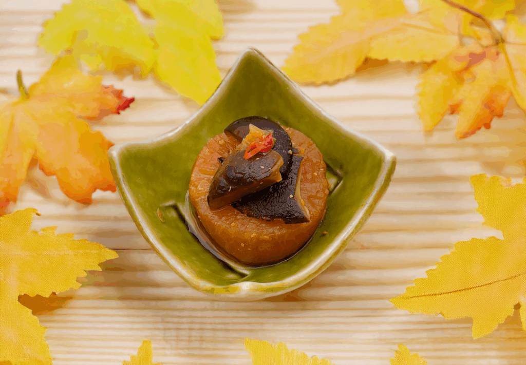 大根と椎茸を、佐々長醸造(株)の早池峰味噌で煮込みました。輪切り唐辛子のほどよい辛みを添えた、ほっとする味わいの味噌煮です。